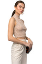The Sleeveless Mock Neck Band Top is a sleek and contemporary addition to your wardrobe. Its mock neck design adds an element of sophistication, while the sleeveless cut makes it suitable for warm weather or layering. With a flattering band detail, this top effortlessly combines style and versatility, making it a chic choice for various occasions.